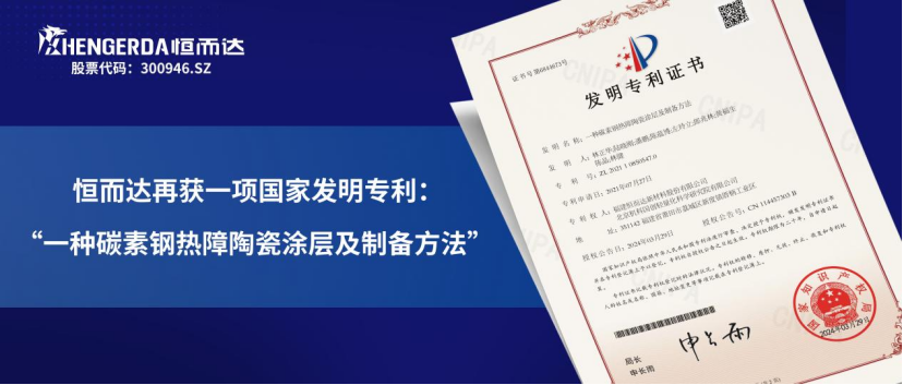 喜訊丨恒而達再添碩果,榮獲“一種碳素鋼熱障陶瓷涂層及制備方法”國家發(fā)明專利!