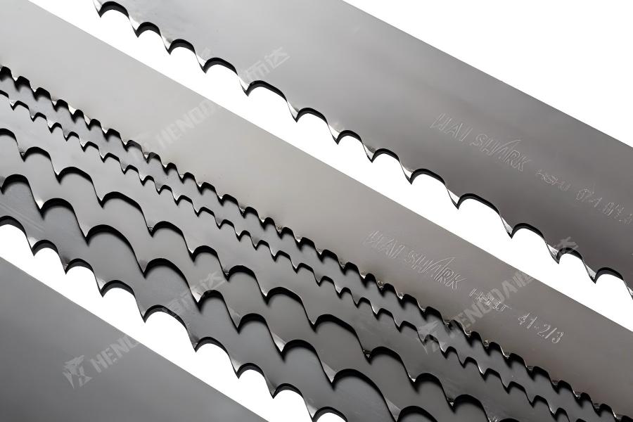 上圖為磨齒帶鋸條,是一種雙金屬高速鋼帶鋸條新工藝產(chǎn)品,齒部角度、光潔度、鋒利度更加完美,鋸切能力更強(qiáng)、使用壽命更長。