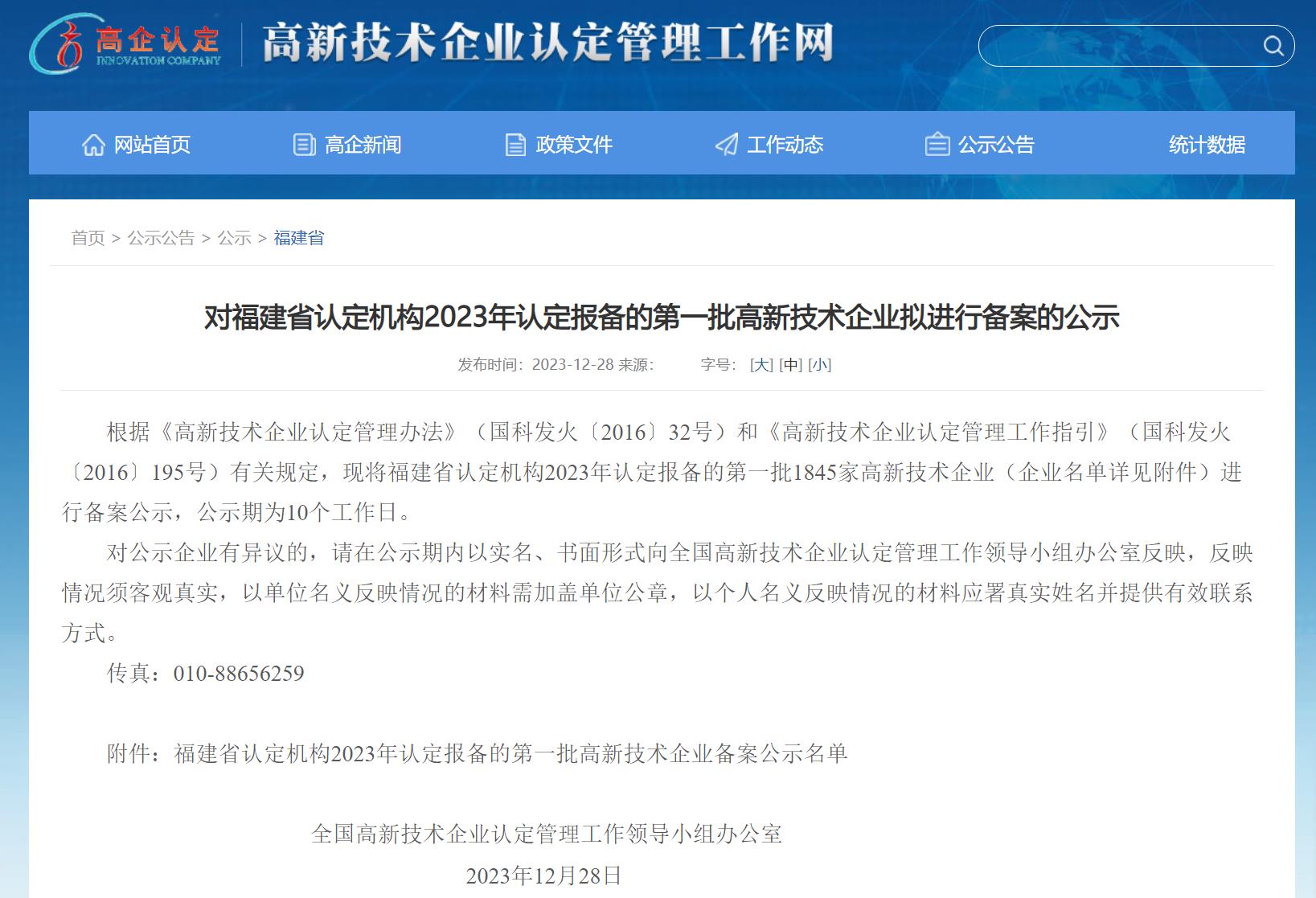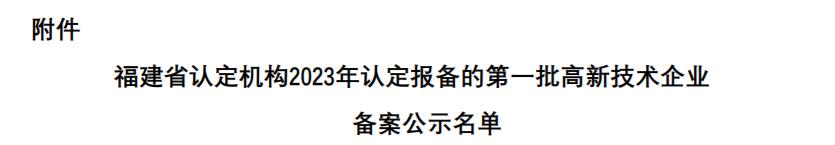 12月28日,高新技術(shù)企業(yè)認(rèn)定管理工作網(wǎng)發(fā)布“福建省2023年第一批高新技術(shù)企業(yè)”結(jié)果公示,經(jīng)過嚴(yán)格的資格審查程序,恒而達(dá)再次順利通過國家高新技術(shù)企業(yè)認(rèn)定!