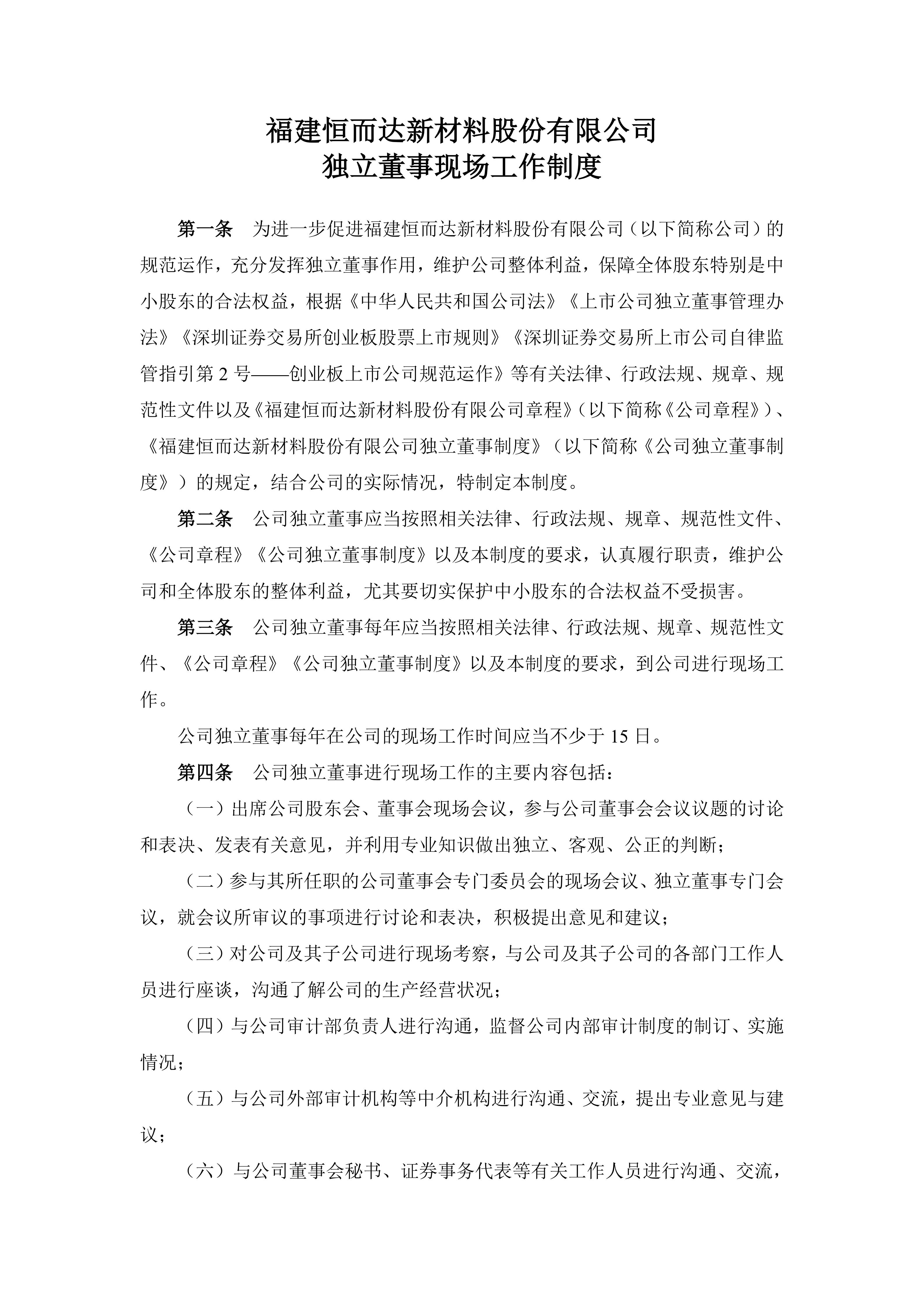 獨(dú)立董事現(xiàn)場(chǎng)工作制度